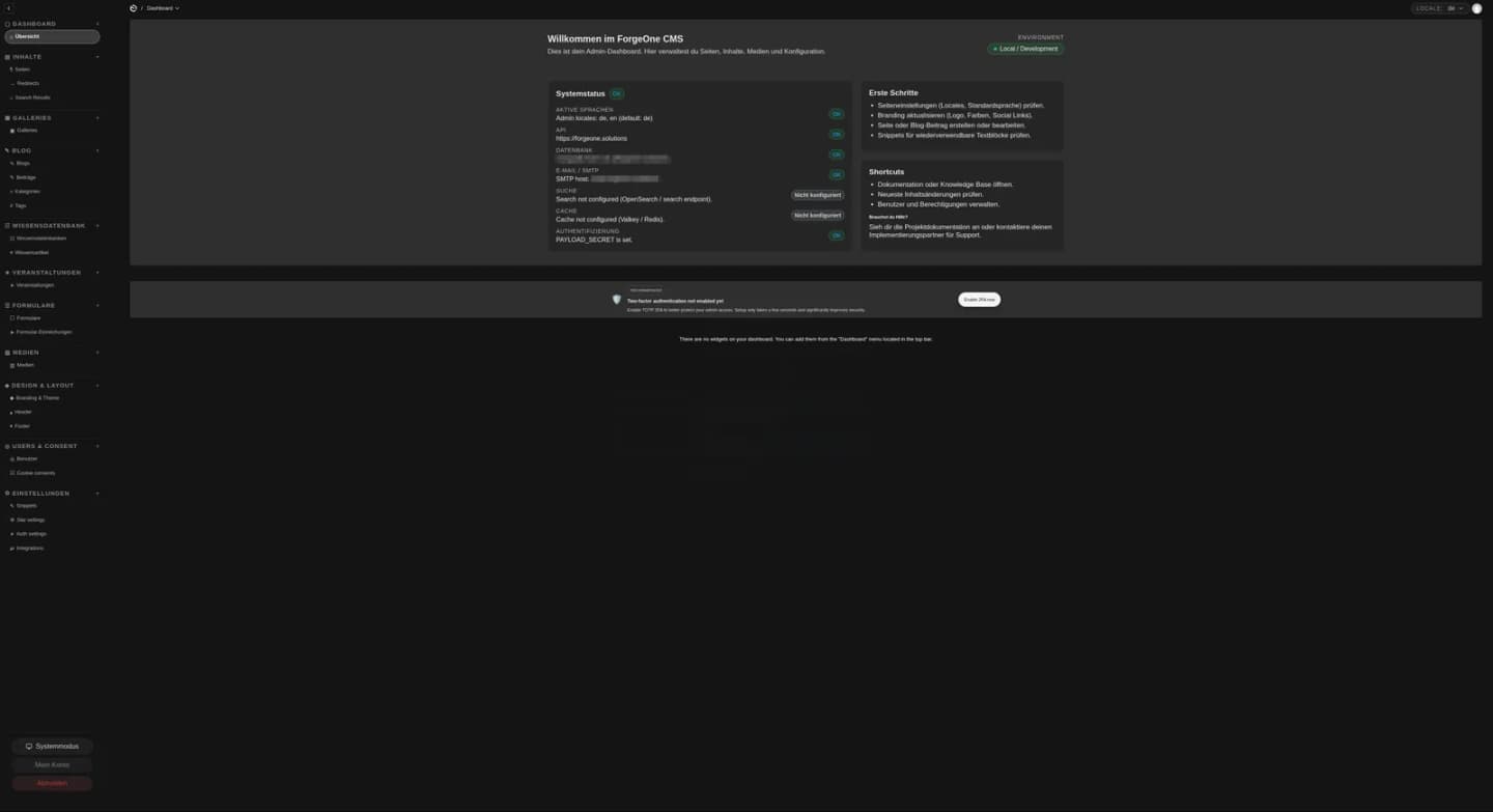 ForgeOne CMS - Backend/Admin Interface | Deutsch